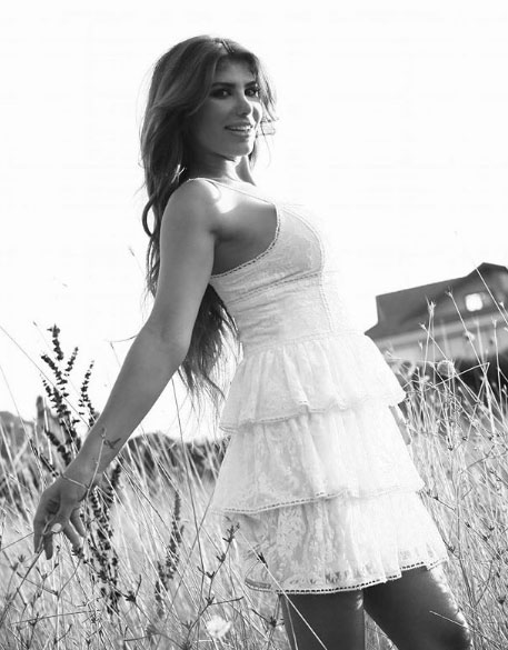 Mini elbisesiyle poz veren Hatice, sosyal medyada gündem oldu.