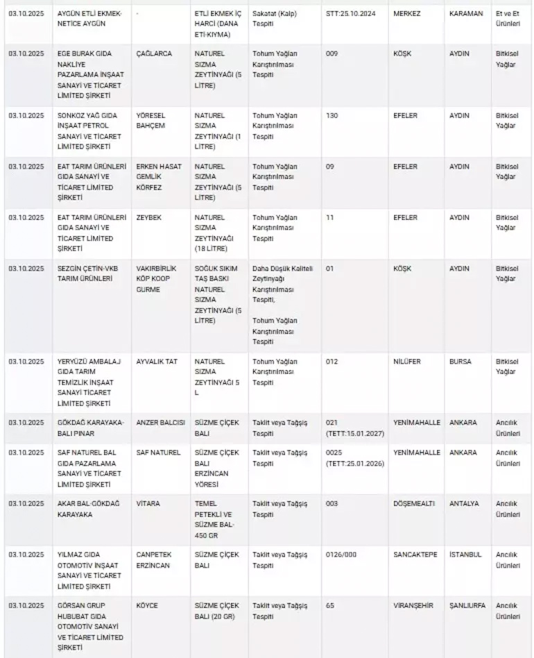 Merkezi Bursa’nın Nilüfer ilçesinde bulunan bir firmanın Ayvalık Tat markasıyla sattığı naturel sızma zeytinyağında tohum yağları karıştırıldığı tespit edildi.