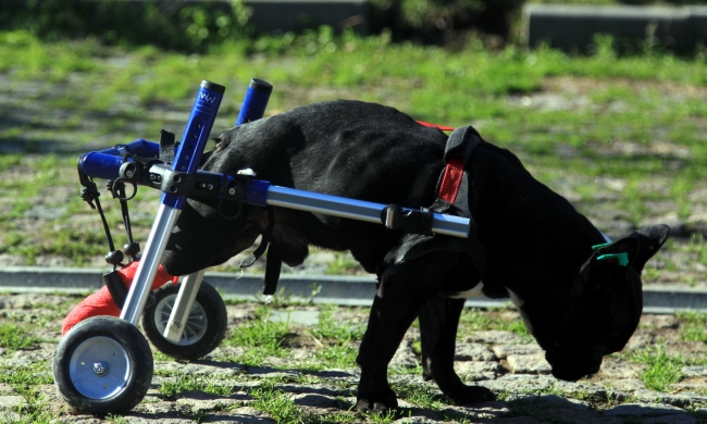 Burada tedavisi ve bakımı yapılan köpek, felçli bacaklarını kullanamadığı için yürütülemedi. Bakım merkezinin temasları sayesinde, köpeğin yürümesi için tekerlekli yürüteç temin edildi.