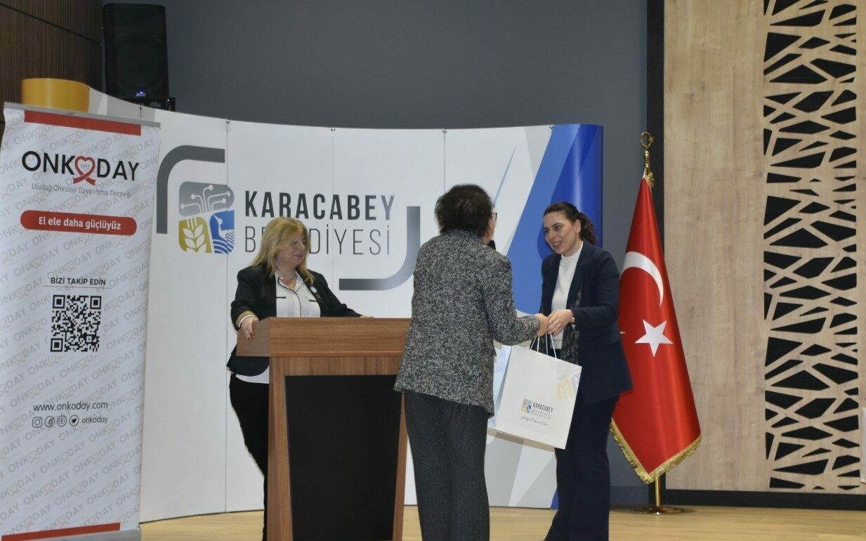 Karacabey Belediyesi, Dünya Kanser Günü kapsamında Uludağ Onkoloji Dayanışma Derneği (ONKODAY) iş birliği ile önemli bir seminere imza attı. Kansere karşı bilinç oluşturulması ve erken teşhisin önemine dikkat çekmek amacıyla düzenlenen etkinlik, Ergün Koç Kültür Merkezi’nde gerçekleşti. Özellikle kadınlar tarafından büyük ilgi gören seminere, Karacabey Belediyesi Özel Kalem Müdürü Mehtap Önler de katıldı.