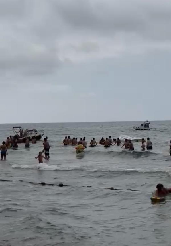 Durumun fark edilmesi üzerine bölgedeki cankurtaranlar kurtarma çalışması başlattı. Teknenin altında kalan 6 kişilik aile, ekipler ve çevredekilerce kurtarıldı.