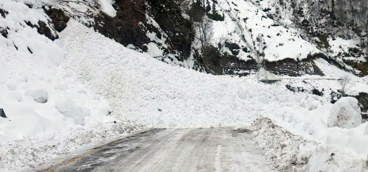 Çığ nedeniyle 6 köye ulaşımın sağlandığı kara yolu çift taraflı trafiğe kapandı.