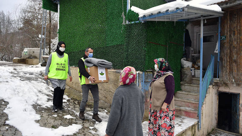 İnsan odaklı hizmetlerini, Türkiye’nin örnek sosyal sorumluluk projesi ‘Belediyem Benimle’ ekipleri tarafından 8 yıldır kesintisiz şekilde sürdüren Osmangazi Belediyesi, ihtiyaç sahibi vatandaşların kapısını çalmaya devam ediyor. Şiddetli kar yağışı ve soğuk havanın etkili olduğu bu günlerde, özellikle dağ yöresindeki mahallelerde yaşayan ihtiyaç sahibi aileleri unutmayan Osmangazi Belediyesi, Belediyem Benimle ekipleri tarafından 18 mahallede belirlenen kimsesiz ve yardıma muhtaç ailelere tek tek ulaşarak soba, erzak, battaniye ve hijyen seti yardımında bulundu.