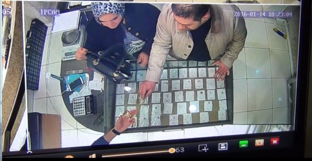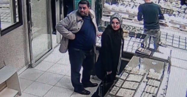 Bir kadın ve adam, Sarraflar Çarşısındaki bir kuyumcuya müşteri gibi girdi. Bilezik almak istediğini belirten kadın, el çabukluğu ile tezgah üzerindeki bileziklerden ikisini çaldı. Şüpheli, daha sonra “Bizim istediklerimiz bu tarz değil” diyerek kuyumcudan ayrıldı. Durumdan şüphelenen işyeri sahibinin güvenlik kamerasını incelemesi üzerine, kadının iki adet altın bileziği aldığı fark edildi. Hırsızlık olayı polise bildirildi ve şahıslar her yerde aranıyor.