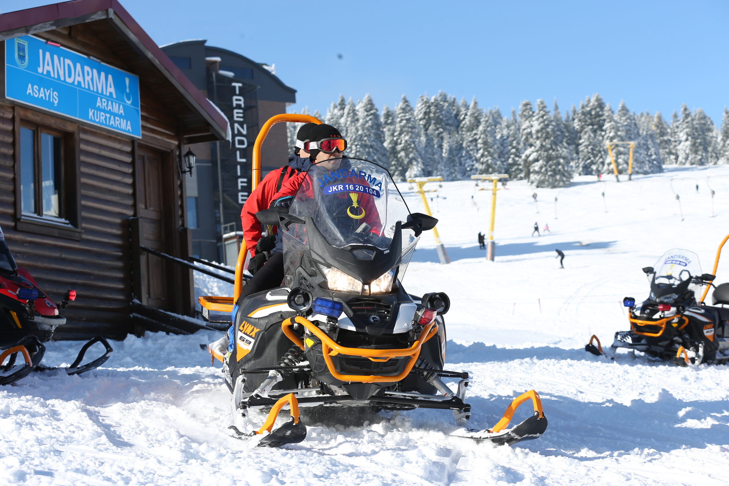 Kış sezonunda çok sayıda yerli ve yabancı turisti ağırlayan Uludağ’da huzuru ve güvenliği sağlamak için İl Jandarma Komutanlığına bağlı asayiş ve trafik ekipleri ile JAK timleri de görev alıyor.