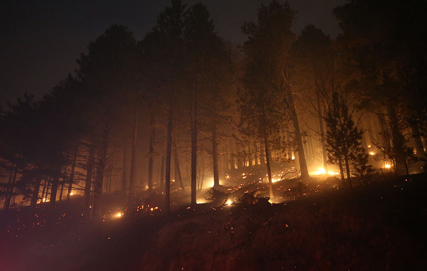 Ekipler yangına 60 arazöz, 5 itfaiye aracı, 2 dozer ve 300 personelle müdahale etti.