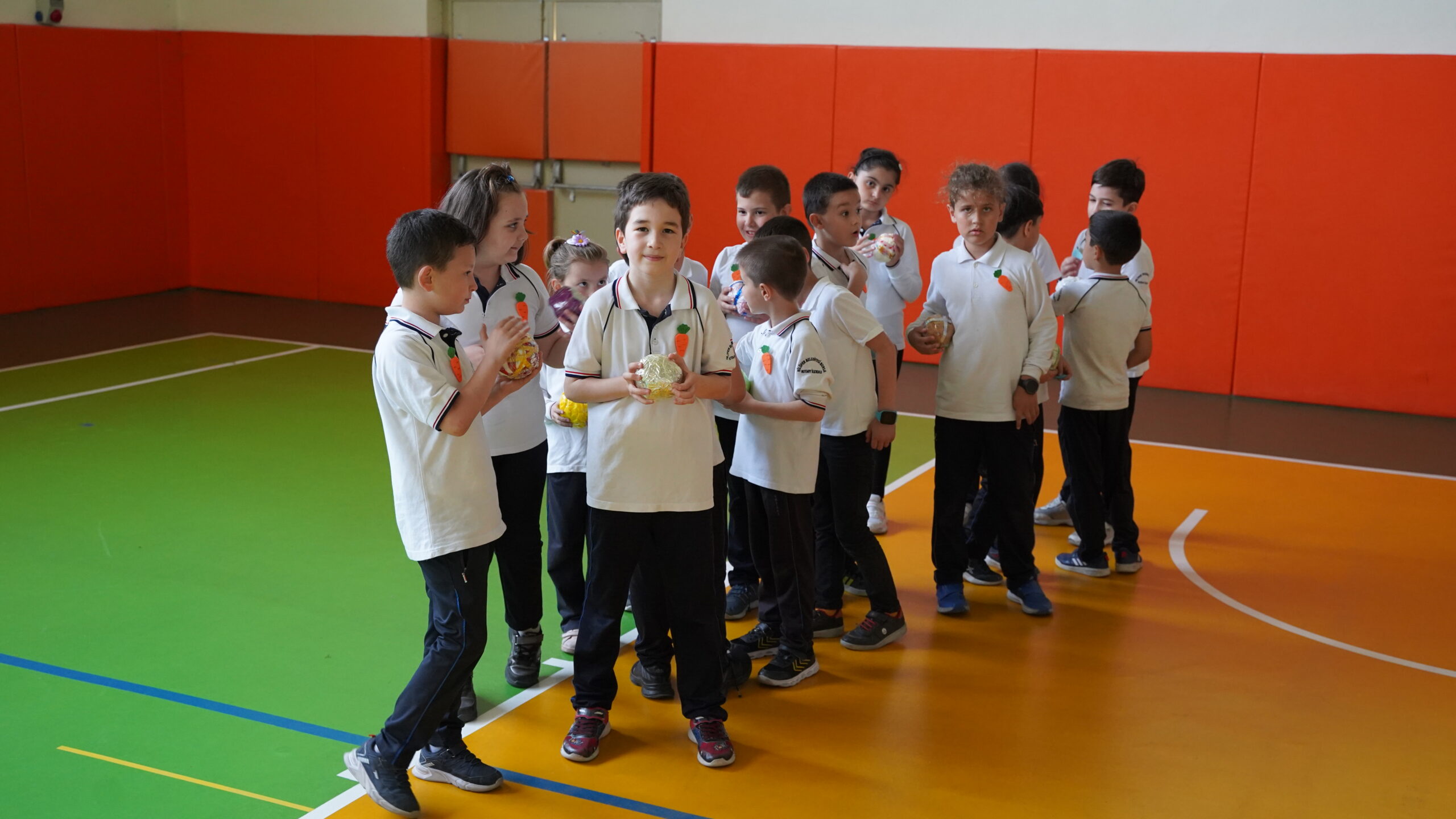 Sağlıklı Beslenme ve Hareketli Hayat Birimi tarafından hazırlanan keçe rozetlerle havuçlar ve çilekler olarak iki takıma ayrılan çocuklar, birbirleriyle yarışarak bol hareketli ve doyasıya eğlenceli bir gün geçirdiler.