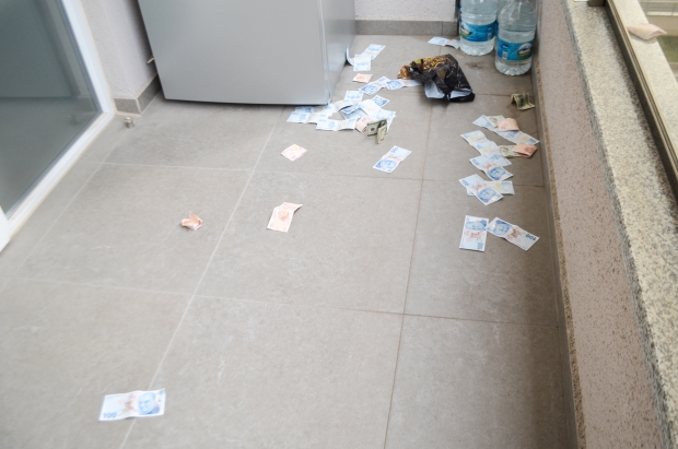 Nilüfer ilçesindeki kiralık rezidansta oturan evli çift, kapıyı polise açmadı. Bunun üzerine kapıyı koçbaşı ile kıran ekipler içeri girdi. Bu sırada S.M.A. ve E.Y.A., 7 bin lira ve 600 dolar sahte parayı poşetle bir alt kattaki balkona atmak istedi. Poşetin açılmasıyla paraların bir kısmı yola savruldu.