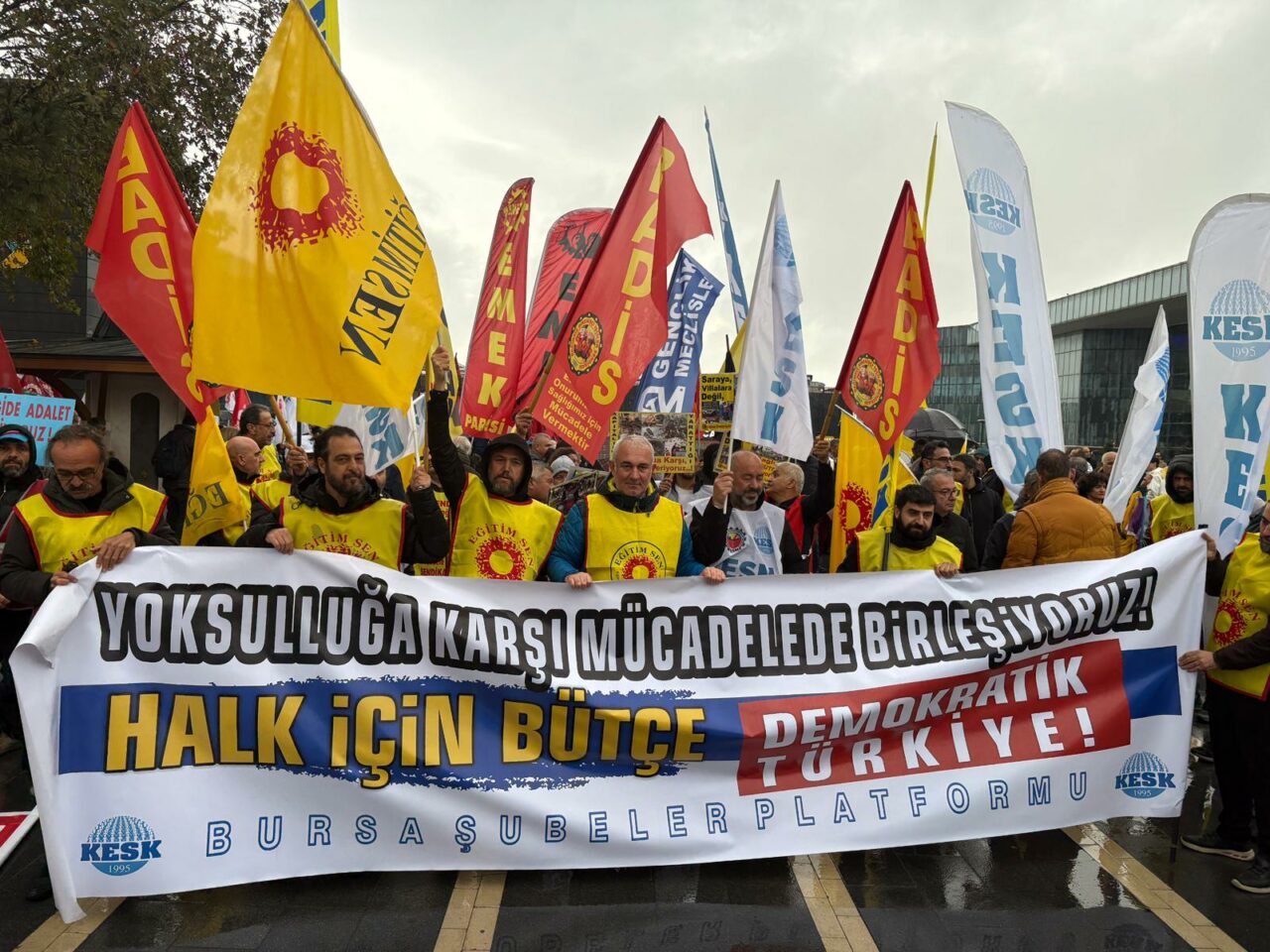 KESK Bursa Şubeler Platformu, ‘Halk için Bütçe, Demokratik Türkiye’ çağrısıyla geniş katılımlı yapılan eylemde, gelir adaletsizliği, vergi oranları ve işsizlik oranlarını eleştirdi. Darmstadt Caddesi’nden Kent Meydanı’na yürüyen KESK üyeleri yapılan açıklamada yüksek enflasyondan vergi yüküne, gelir adaletsizliğinden işsizliğe kadar birçok soruna dikkat çekti.
