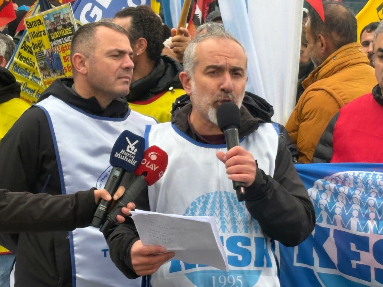 Emekçilerin zor bir süreçten geçtiğini vurgulalayan Efe, “İşsizlikte Avrupa birincisiyiz. İşsizlik yüzde 30’u, işsiz sayısı 12 milyonu aştı. Toplumun en zengin yüzde 20’si toplam gelirin yarısını alırken, kalan yüzde 80 diğer yarıyı paylaşıyor. Çalışanların maaş ve ücret artışlarında TÜİK’in çelişkili enflasyon rakamları temel alınıyor. Emeklilerin durumu ise giderek ağırlaşıyor. Her 4 emekliden biri açlık sınırının yarısına denk gelen bir aylıkla yaşam savaşı veriyor. TBMM’de görüşülen 2026 bütçesi emekçiye ağır yükler yüklüyor. Bizim payımıza daha fazla vergi, daha düşük ücret ve daha fazla yoksulluk düşüyor. Sadece kamu emekçilerini değil, bu düzene itirazı olan herkesi ve her kesimi emekten yana bütçe talebini yükseltmeye, yoksulluğa karşı mücadelede birleşmeye çağırıyoruz” dedi.