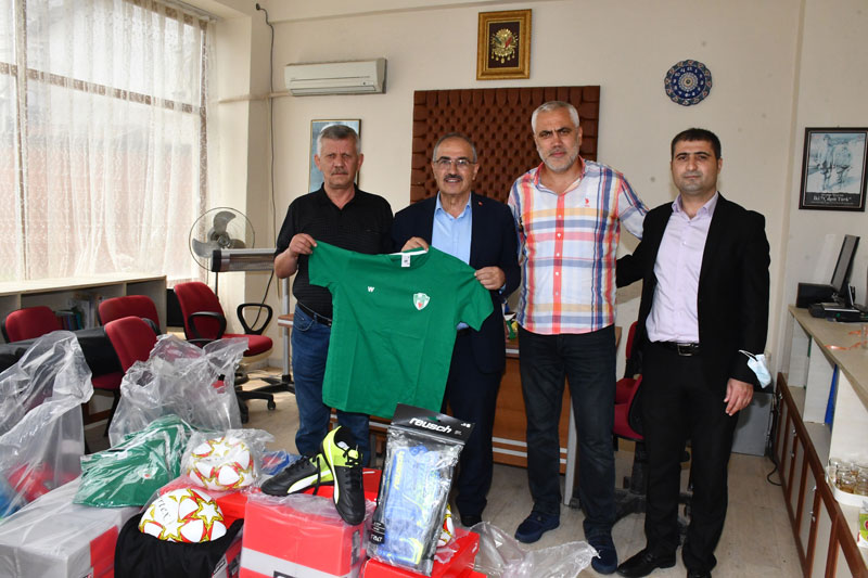 Forma, eşofman takımı, spor ayakkabı, krampon, çanta ve çorap gibi malzemeler, düzenlenen törenle sporculara teslim edildi.
