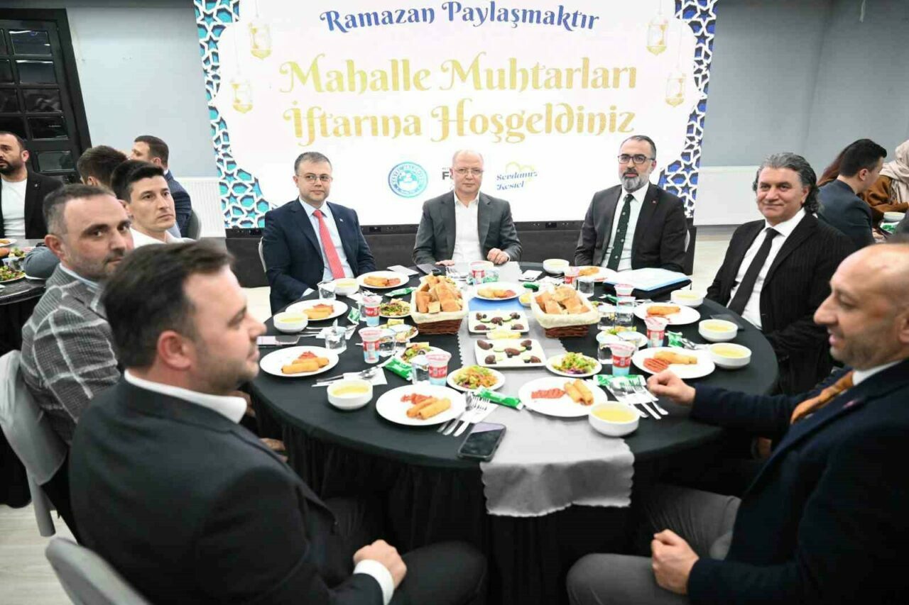 İftar programında konuşan Belediye Başkanı Ferhat Erol, seçimden bugüne geçen bir yıllık süreçte mahallelere yapılan yatırımları ve gerçekleştirilen projeleri bir sunum eşliğinde paylaştı. Başkan Erol, muhtarlarla iş birliği içinde çalışmanın önemine vurgu yaparak, ilçenin her köşesinde hizmet seferberliğinin süreceğini belirtti.