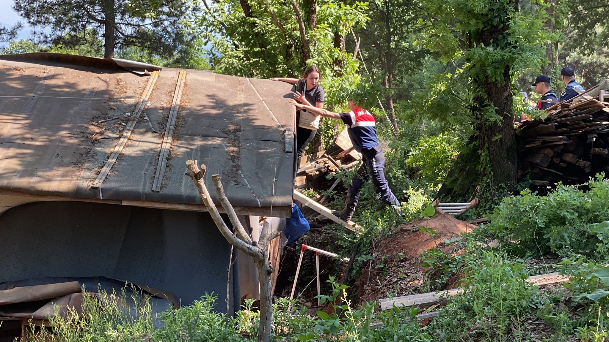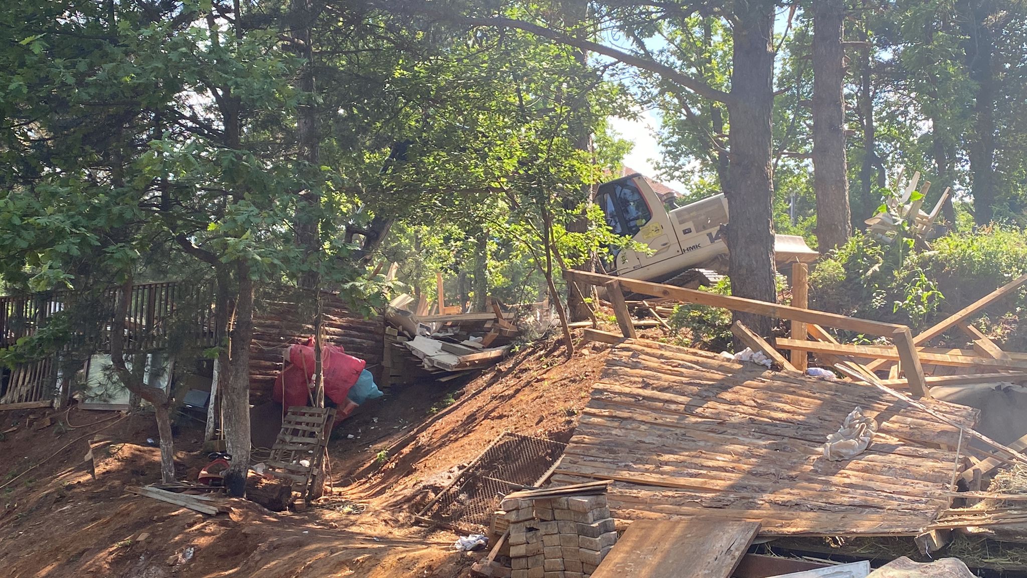 Aile bireylerinden bir kadının belediye avukatına eliyle vurması fotoğraflarla gösterilirken, kaçak yapının yıkımı gerçekleşti.