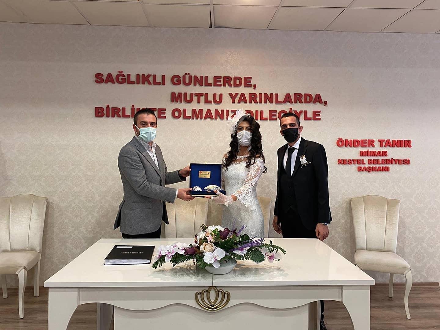 Başkan Tanır, ‘’Geçtiğimiz son 1 yıl içerisinde 500 çiftimiz, dünya evine girmek adına belediyemize başvurdu. Her ne kadar dünyanı sarsan pandemi problemi olsa da çiftlerimizi geri çevirmek istemedik. Üst seviyeye çıkardığımız tedbirler ile çiftlerimizin nikah akitlerini gerçekleştirdik. Kısıtlamaların sonra ermesi ve normalleşme sürecine girmemiz ile birlikte nikah müracaatlarında da yoğunluk yaşıyoruz. Çiftlerimiz, dünya evine girmek için Kestel’i tercih ediyor. Bizlerde hem nikah memurluğumuzun hem de düğün salonumuzun kapılarını onlara açıyoruz’’ diye konuştu.
