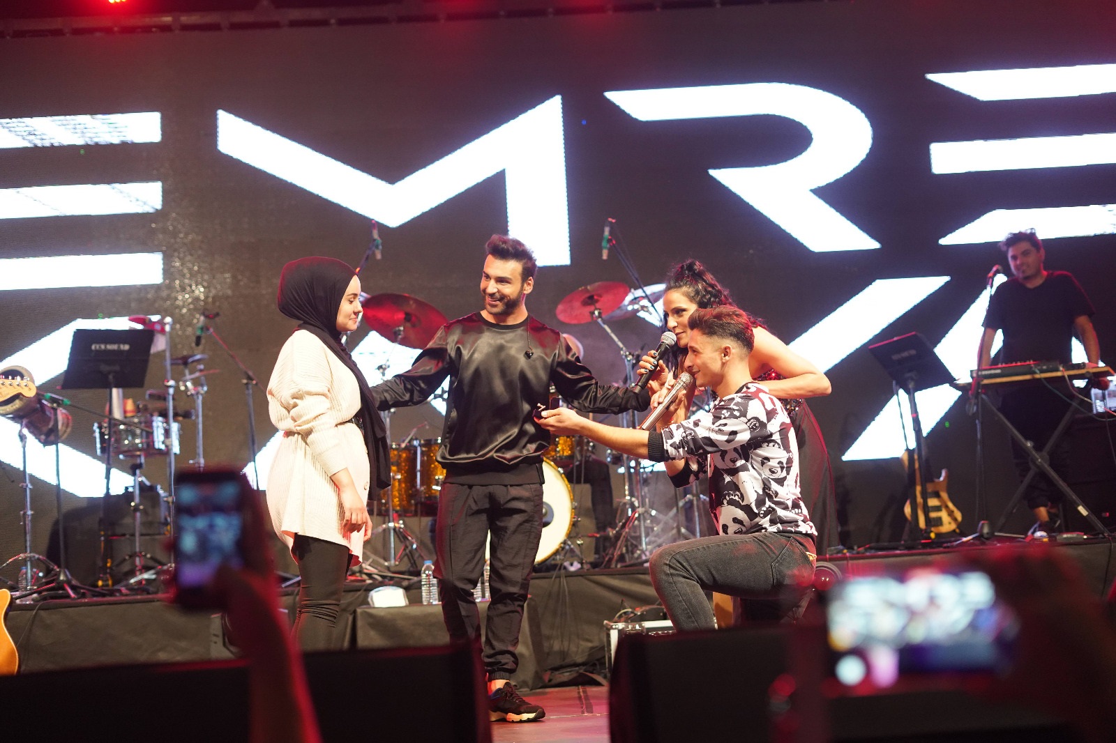 Konser sırasında ise bir evlilik teklifi sürprizi yaşandı. İzleyiciler arasında bulunan Arif Bakır’ın, sürpriz evlilik planı Emra Kaya’nın da desteğiyle gerçekleştirdi. Arif Bakır’ın sevgilisi Sinem Gökçe sahneye çağırılırken, önünde eğilen Arif Bakır, binlerce kişinin önünde evlilik teklifinde bulundu.