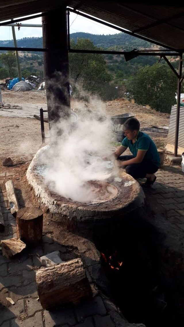 Sami Öztürk ’’Üzümler olgunlaşıp pekmez sıkma zamanı gelince bazı ön hazırlıklar yapmak gerekir. Bu hazırlıklar; üzüm sıkılacak yerin (havuz) hazırlanıp temizlenmesi. Üzüm şırası içine atılacak ak toprağın temini. Biz bu ak toprağı Yağcık köyümüzden temin ederiz. Ak toprağı, üzümü ezme aşamasında bir çuvala bir avuç atarız. Şıra kaynatılacak ocağın hazırlanması, kazanların ocağa konmasıdır’’ şeklinde konuştu.