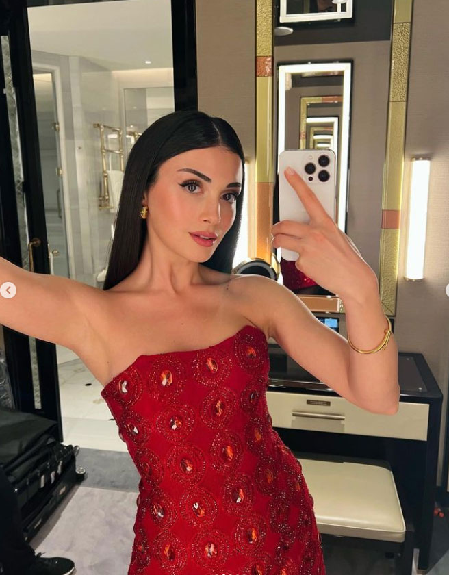 Sosyal medyayı aktif kullanan güzel oyuncu kırmızı mini elbisesiyle paylaşımda bulundu. Verdiği pozlara takipçilerinden binlerce beğeni ve yorum yağdı.