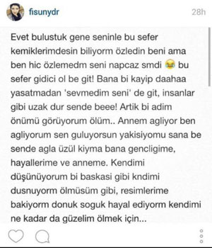 FisunYurdusever, Hürriyet’ten Ayşe Arman’a verdiği röportajda, “Fotoğraflarımı Instagram’da paylaşmak beni hayata bağlıyor, motive ediyor. Güzel yorumlar okumak kadar beni mutlu eden bir şey yok” demişti.