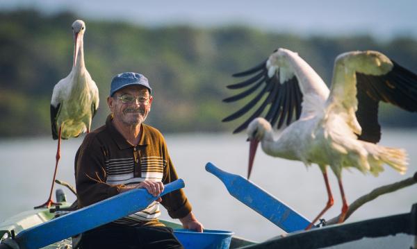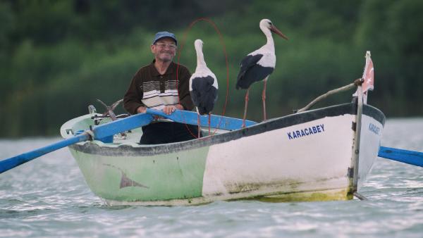 Yaren leylek, koronavirüs tedbirleri kapsamında 65 yaş ve üzerine sokağa çıkma kısıtlaması getirilen güne kadar göle açılan balıkçı Adem Yılmaz’ın yıllardır olduğu gibi kayığına kondu. Ancak 67 yaşında olan Adem Yılmaz, sokağa çıkma kısıtlaması nedeniyle kayıkla göle açılamayınca, Yaren leylekten uzak kaldı.