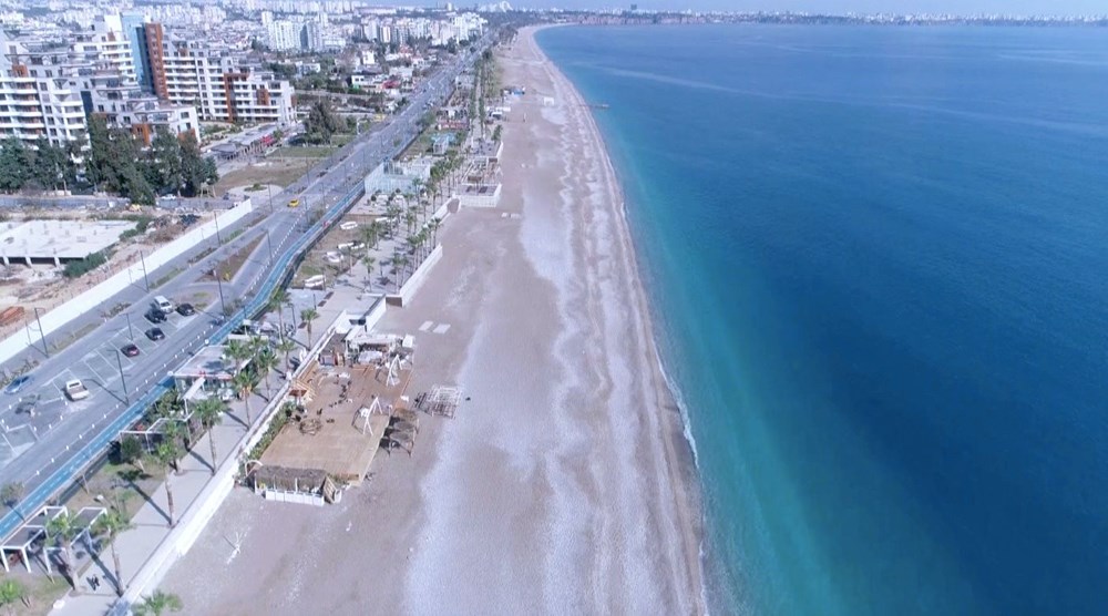 Yasaklar ve turist sayısındaki düşüş sebebiyle eski günlerinden uzak olan Konyaaltı sahilinde yoğunluk olmadığı için suyun berraklığı da dikkat çekti.