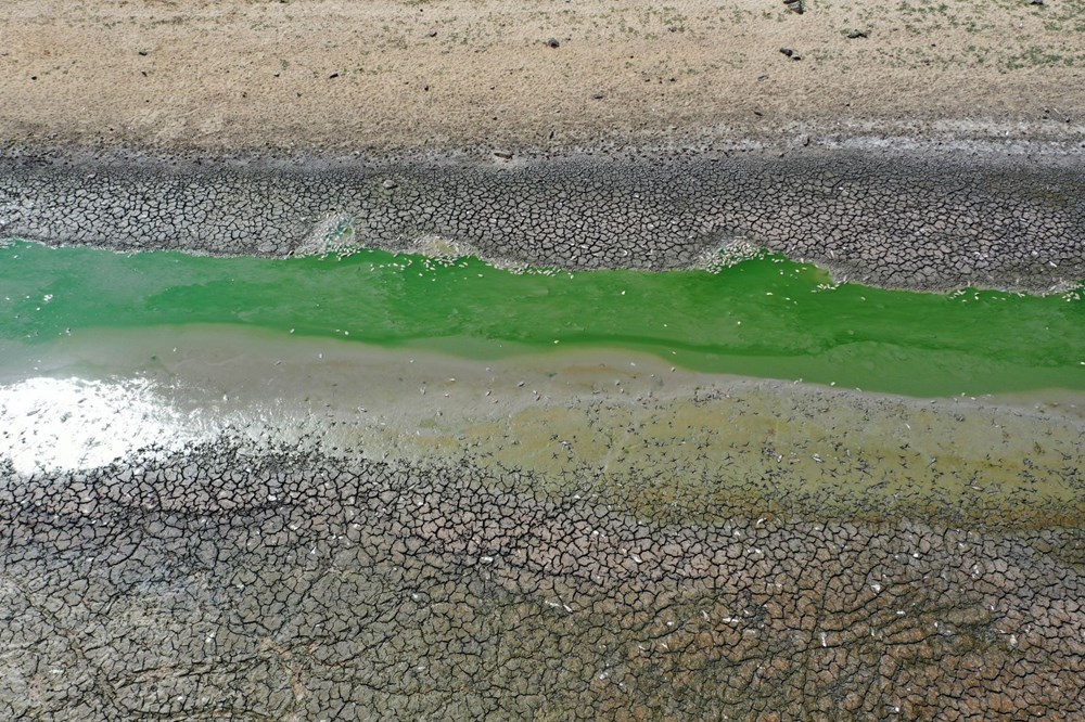 Bölgede etkili olan kuraklık nedeniyle göletteki su seviyesi düştü, gölette neredeyse kıyı kesimlerde su birikintileri kaldı.