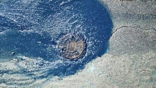 Esenyurt’a bağlı Akçaburgaz Mahallesi’nde bulunan sanayi sitesi içerisinde kalan bir caddedeki rögardan mavi renkte su fışkırdı. Cadde boyunca akan mavi su çevre sakinlerini tedirgin etti.