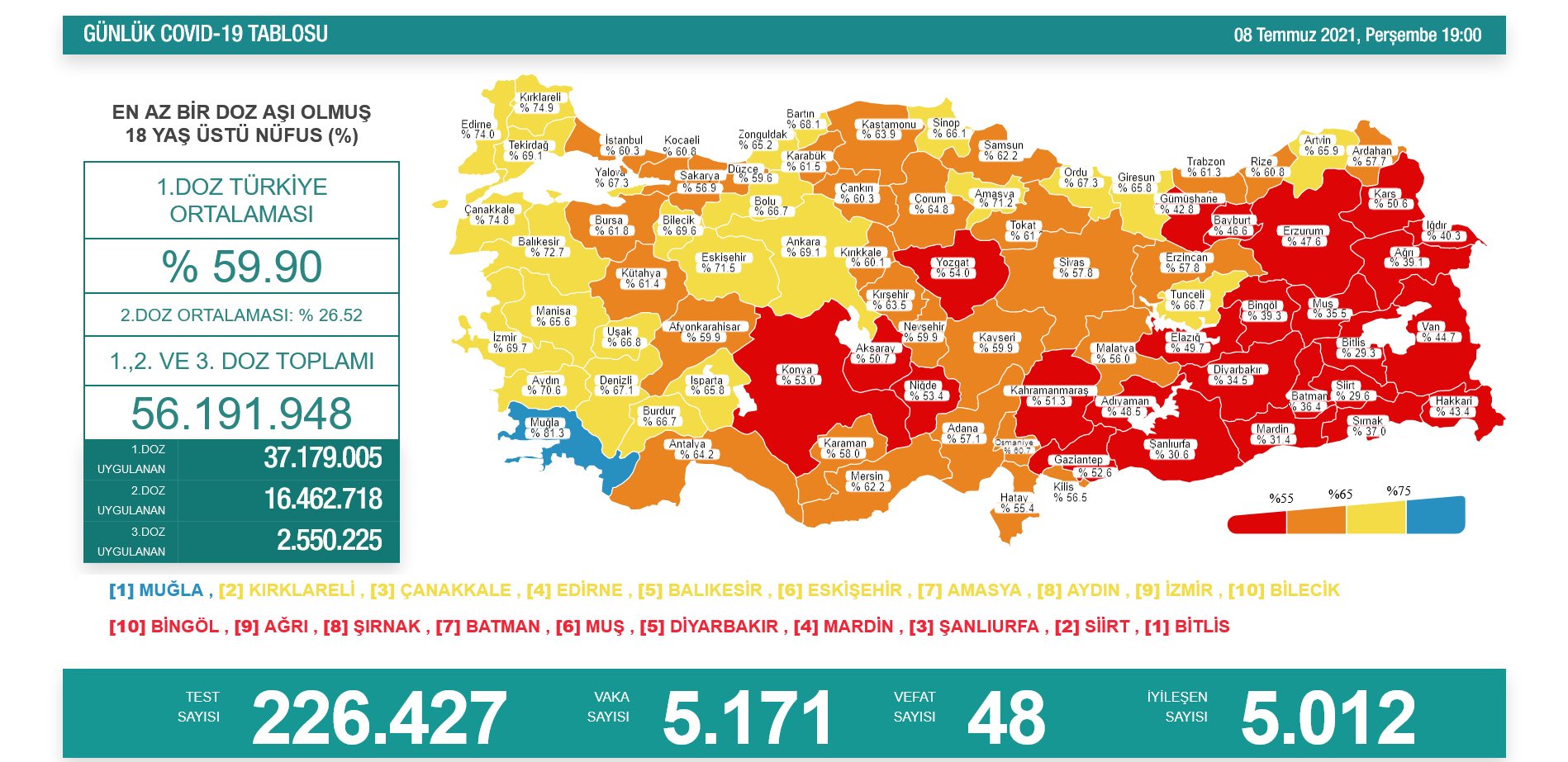 Mavi olmaya yaklaşan illerimizin sayısı artıyor. Aşı ile tam bağışıklık sağlanabilmesi için biran evvel aşınızı olun.