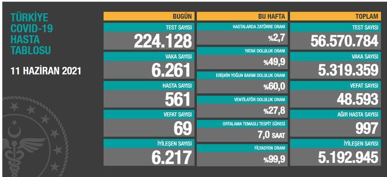 Türkiye’de son 24 saatte 69 can kaybı, 6 bin 261 vaka tespit edildi…