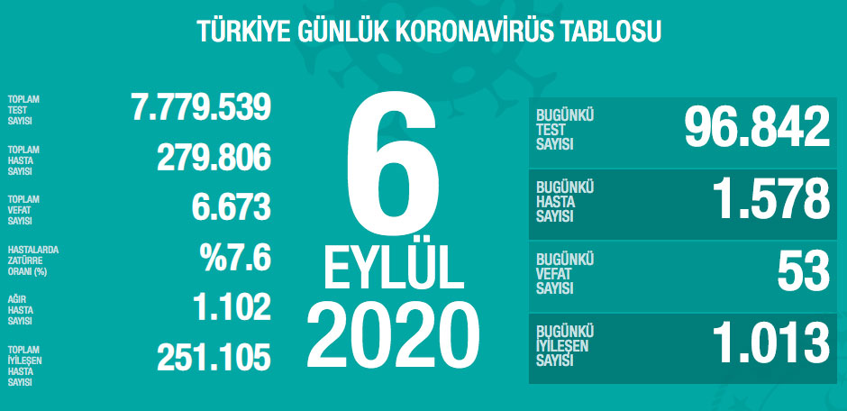 96 bin 842 Kovid-19 testi yapıldı, 1578 kişiye hastalık tanısı konuldu.