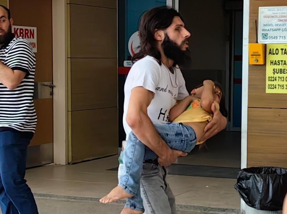 Düştüğü sırada bıçak sağ gözüne saplandı. Kanlar içinde kalan çocuk, ailesi tarafından özel araçla İnegöl Devlet Hastanesine kaldırıldı.
