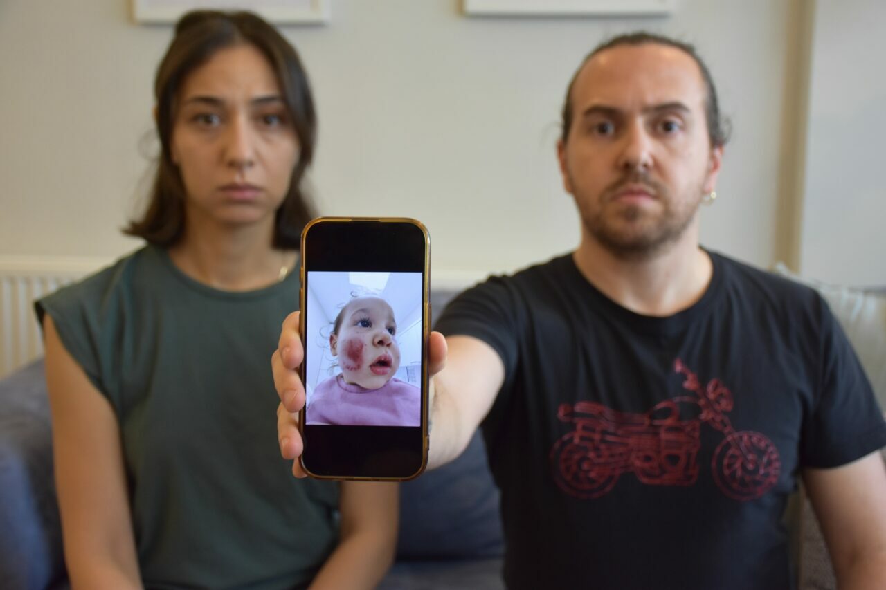 Buse Altıparmak, eşi Onur Altıparmak ile kızını hastaneye götürdü. Çift daha sonra savcılık talebiyle ulaştıkları güvenlik kamerası görüntülerinde, bebeklerinin kreşteki yaşı daha büyük iki çocuk tarafından darbedildiğini gördü.