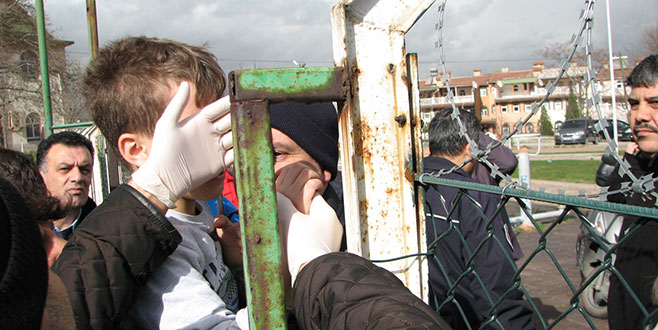 Ancak bu sırada dengesini kaybeden ve düşen küçük Ali’nin eli, demir parmaklığa saplandı. Küçük çocuğun yardımına sahadaki takım doktoru koştu. Büyük uğraşlar sonucunda eli demir parmaklıklardan çıkarılan küçük Ali, ambulansla hastaneye kaldırıldı.