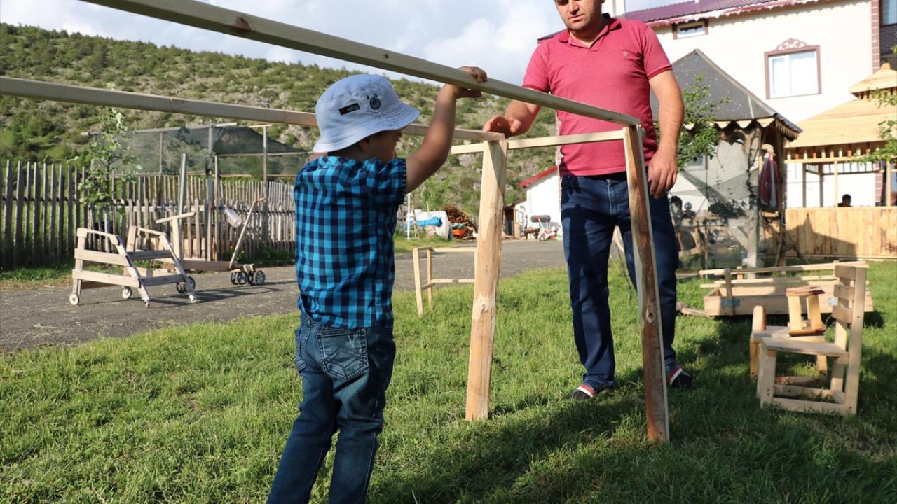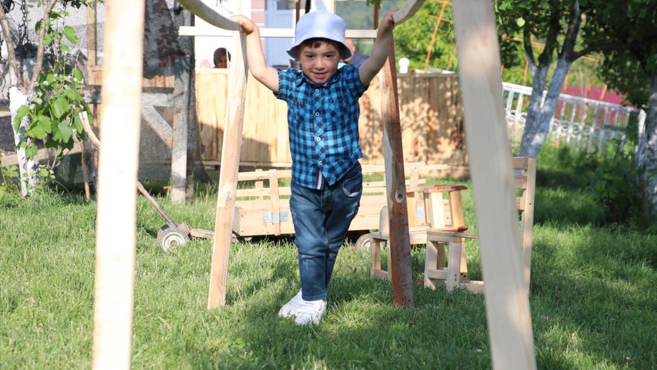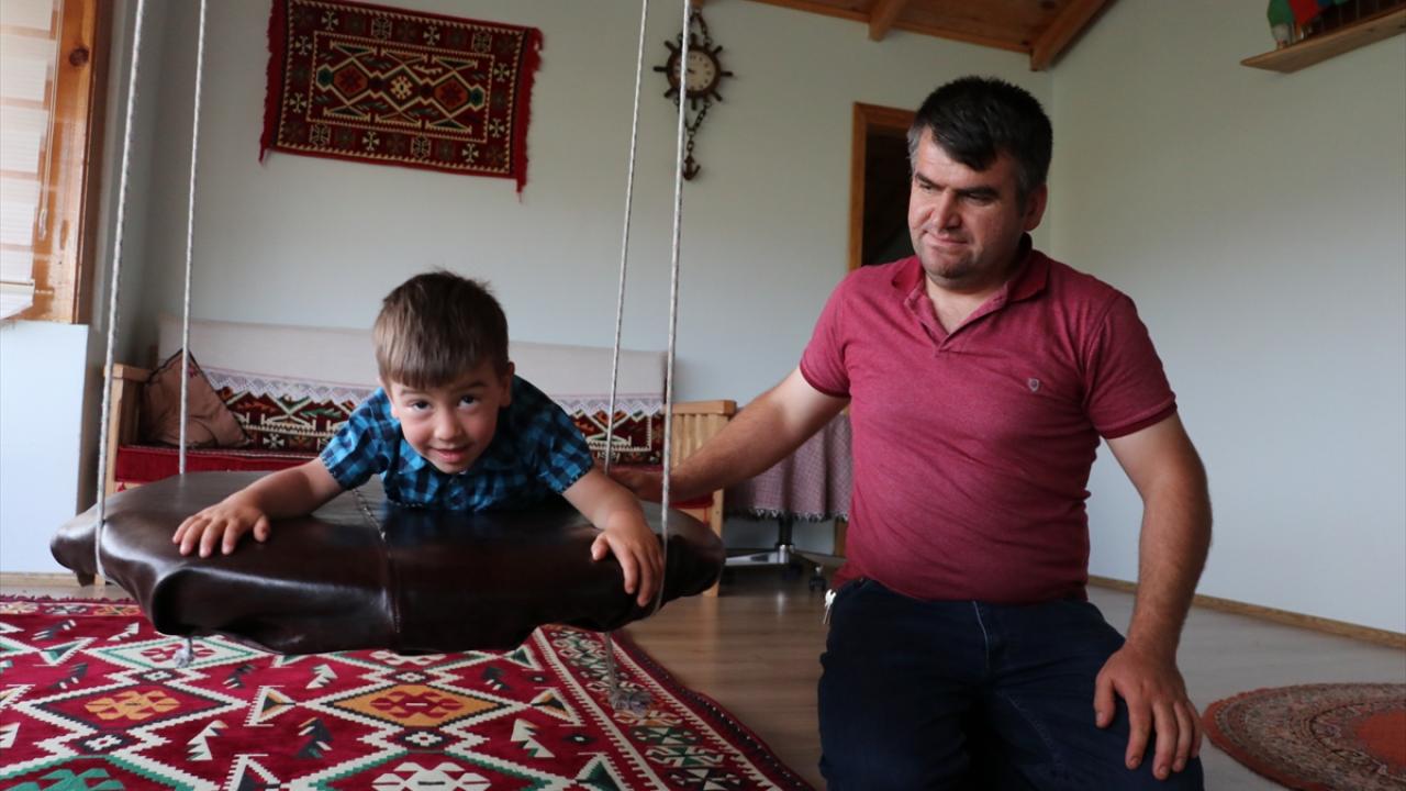 Oğlunun fizik tedavisini desteklemek isteyen Köse, ahşaptan yürüteç ve paralel bar gibi aletler ile evin içinde yine tedavide kullanmak amacıyla bir salıncak yaptı.
