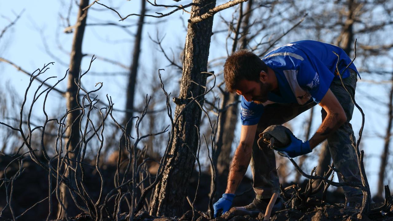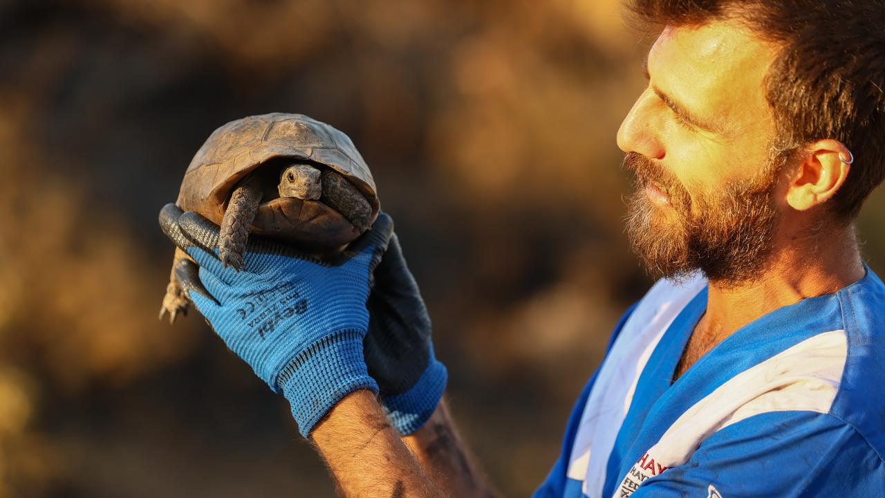 “Yangında en talihsiz olan maalesef kaplumbağalar oluyor. Tavşanları bizden kaçarken gördüğümüzde zarar görmemiş olduklarına seviniyoruz. Küllerin arasında artık onlar gibi düşünerek hareket ediyoruz. Çünkü hissediyorlar. Toprağın altına bir şekilde kazarak giriyorlar. Arkalarında muhakkak iz bırakıyorlar. Burada bir şekilde yangın çalışmaları tamamlandıktan, soğutulduktan sonra görev başlıyor.”