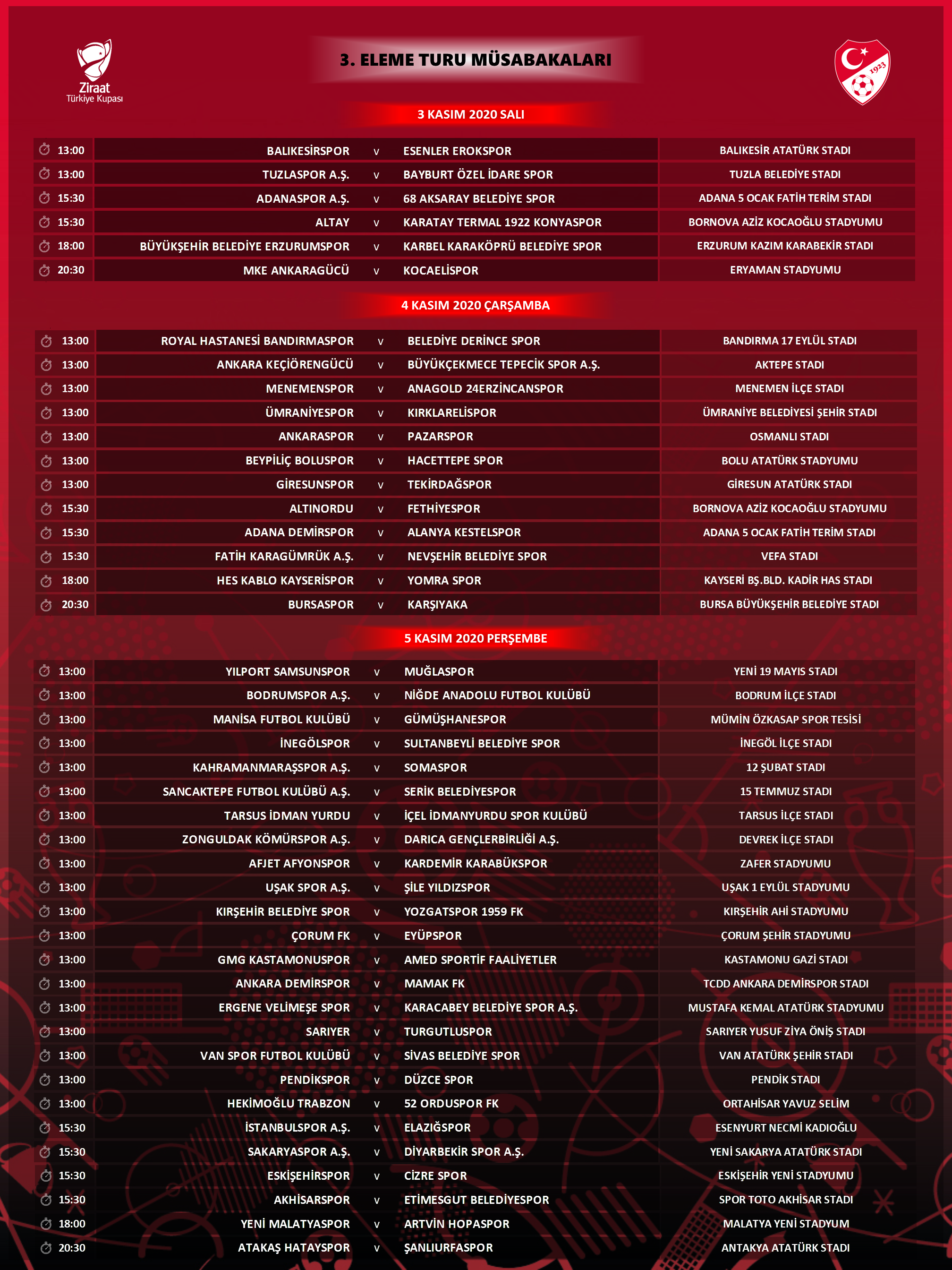 Ziraat Türkiye Kupası’nda 3. eleme turu programı belli oldu.