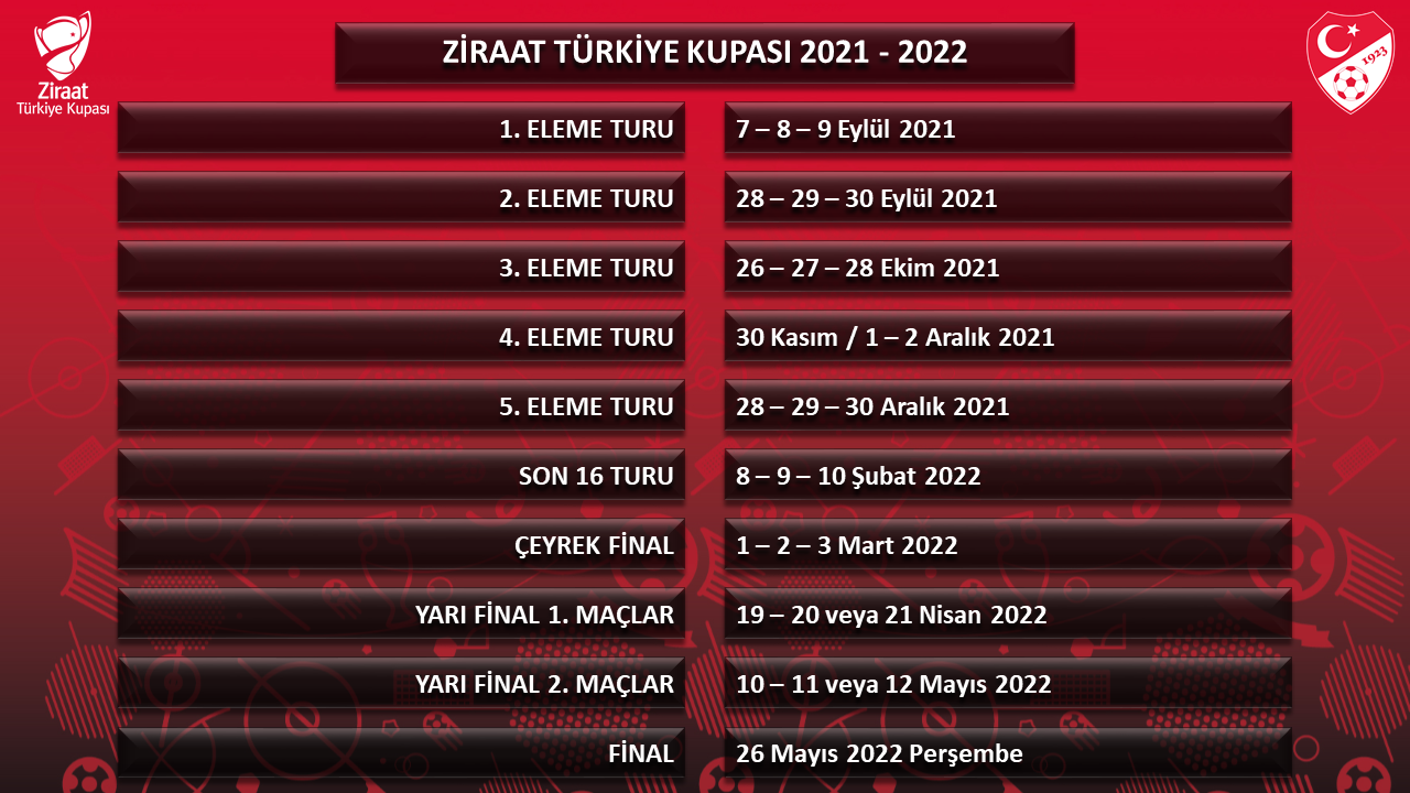 2021 – 2022 sezonu Ziraat Türkiye Kupası maçlarının tarihleri açıklandı.