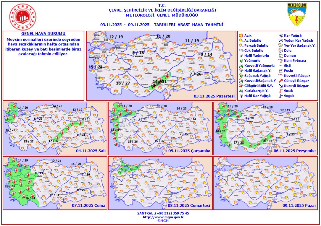Meteoroloji Genel Müdürlüğü (MGM), hava tahmin raporunu güncelledi.