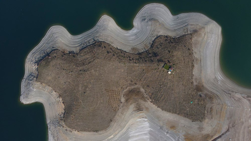 Kuraklıkla birlikte baraj gölünde sular çekilmesi ile Abay’ın adası, ilk defa yarım ada haline geldi.