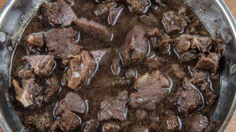 6) Etin tam anlamıyla pişmesine gerek yoktur. Suyunun azalması ve yarı yarıya pişme işlemi gerçekleşmesi yeterlidir.