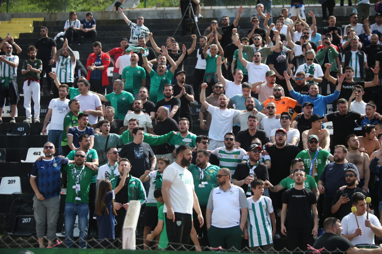 Bursasporlu taraftarlar, Kuşadası’na adeta çıkarma yaptı. Kendilerine ayrılan 100 kişilik bölümde yaklaşık 500 yeşil beyazlı taraftar takımlarına desteklerken maçın ardından Bursa’ya üzgün bir şekilde döndü.