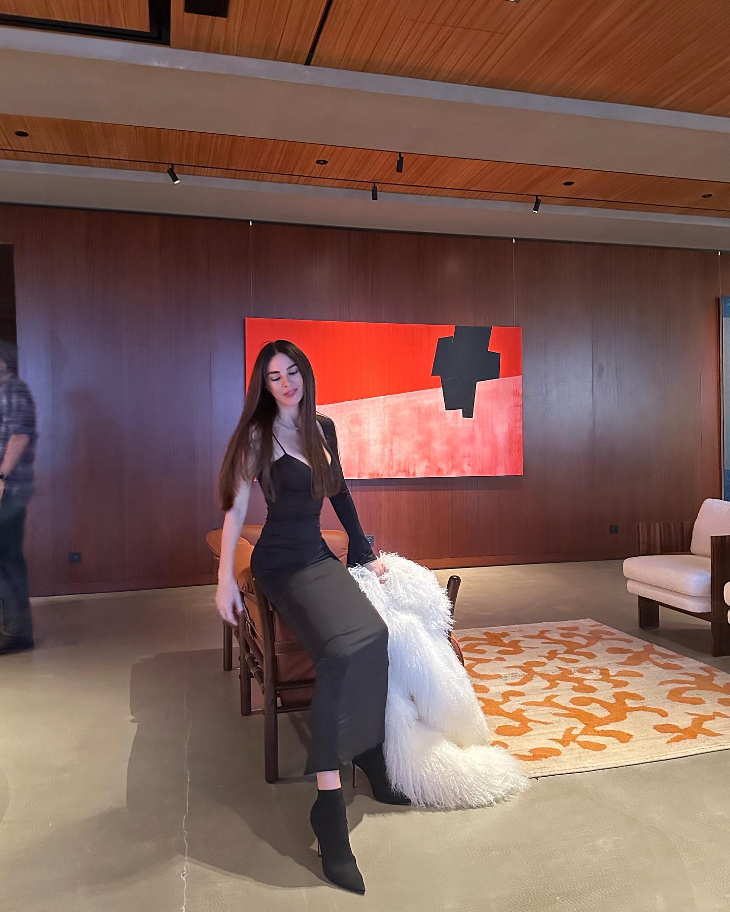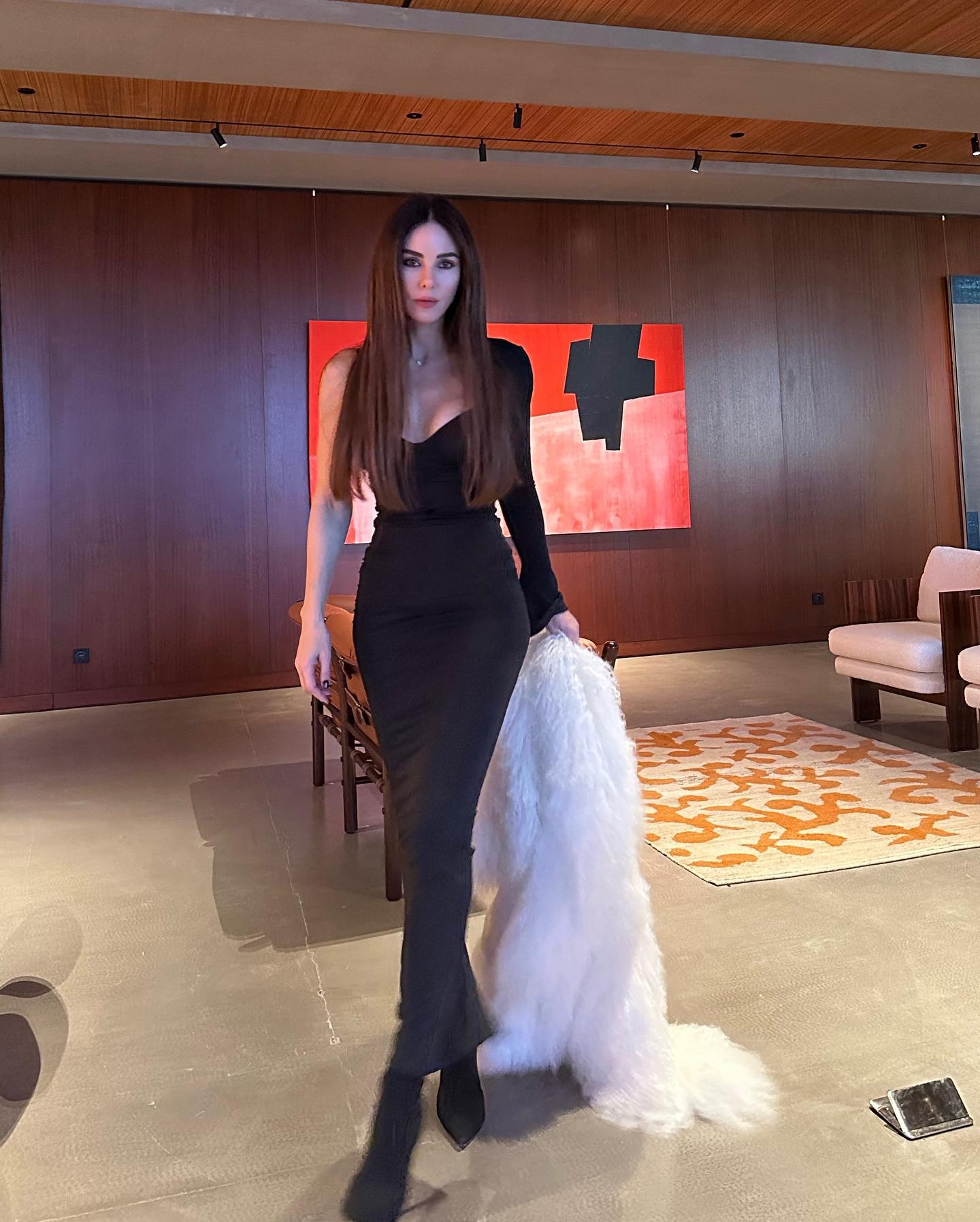 Tescilli güzel, Instagram’da siyah elbisesiyle verdiği pozları paylaştı.