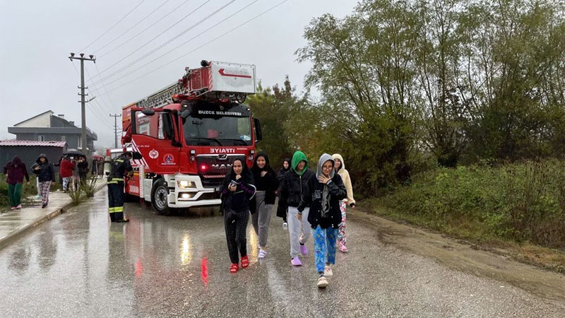 Düzce’de kontrollü doğalgaz salımı yapıldığı sırada çevreye yayılan yoğun koku nedeniyle kız öğrenci yurdunda kalanlar tedbir amaçlı tahliye edildi.
