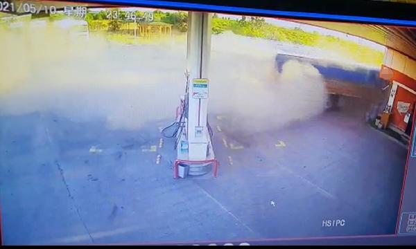 TIR, burada önce park halindeki boş akaryakıt tankerine daha sonra ihata duvarına çarparak durdu.