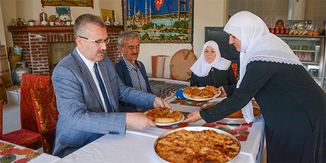 Köyün geleneksel yemeklerinden biri olan soğanlı böreği yapan kadın dernek üyeleri, hazırladıkları böreği Belediye Başkanı Ali Özkan’a ikram etti. Başkan Özkan da bu eşsiz tadın tanıtımı için çalışmalara başladıklarını kaydetti.