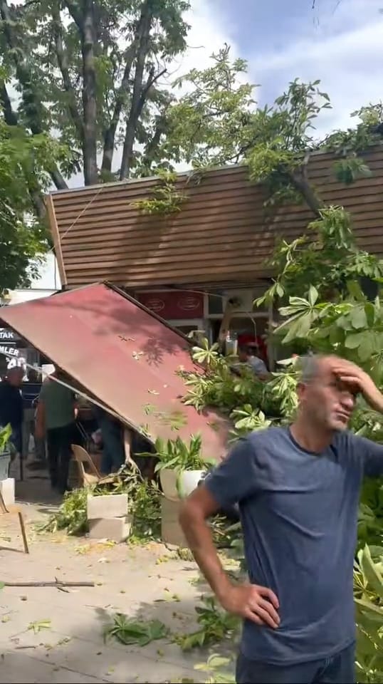Esnafın ihbarıyla bölgeye çok sayıda polis ve itfaiye ekibi sevk edildi. İncelemede bulunan ekipler ağacın kaldırılması için çalışma başlattı.