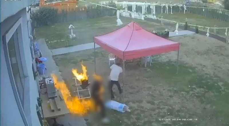 Mangalı tutuşturmak için jel yakıt kullanan Yapıcı, elindeki bidonun alev alarak patlaması ve alevlerin üzerine sıçraması sonucu yanmaya başladı.
