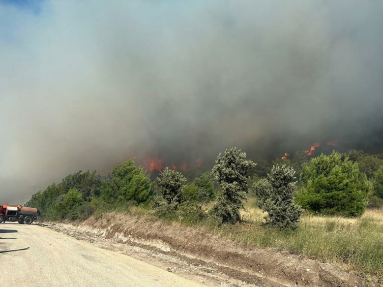 Yangının büyümesi üzerine İzmir ve Balıkesir’den de ekipler takviye edildi. Alevler Sarısığırlar Mahallesi yakınlarındaki ormana da sıçradı.