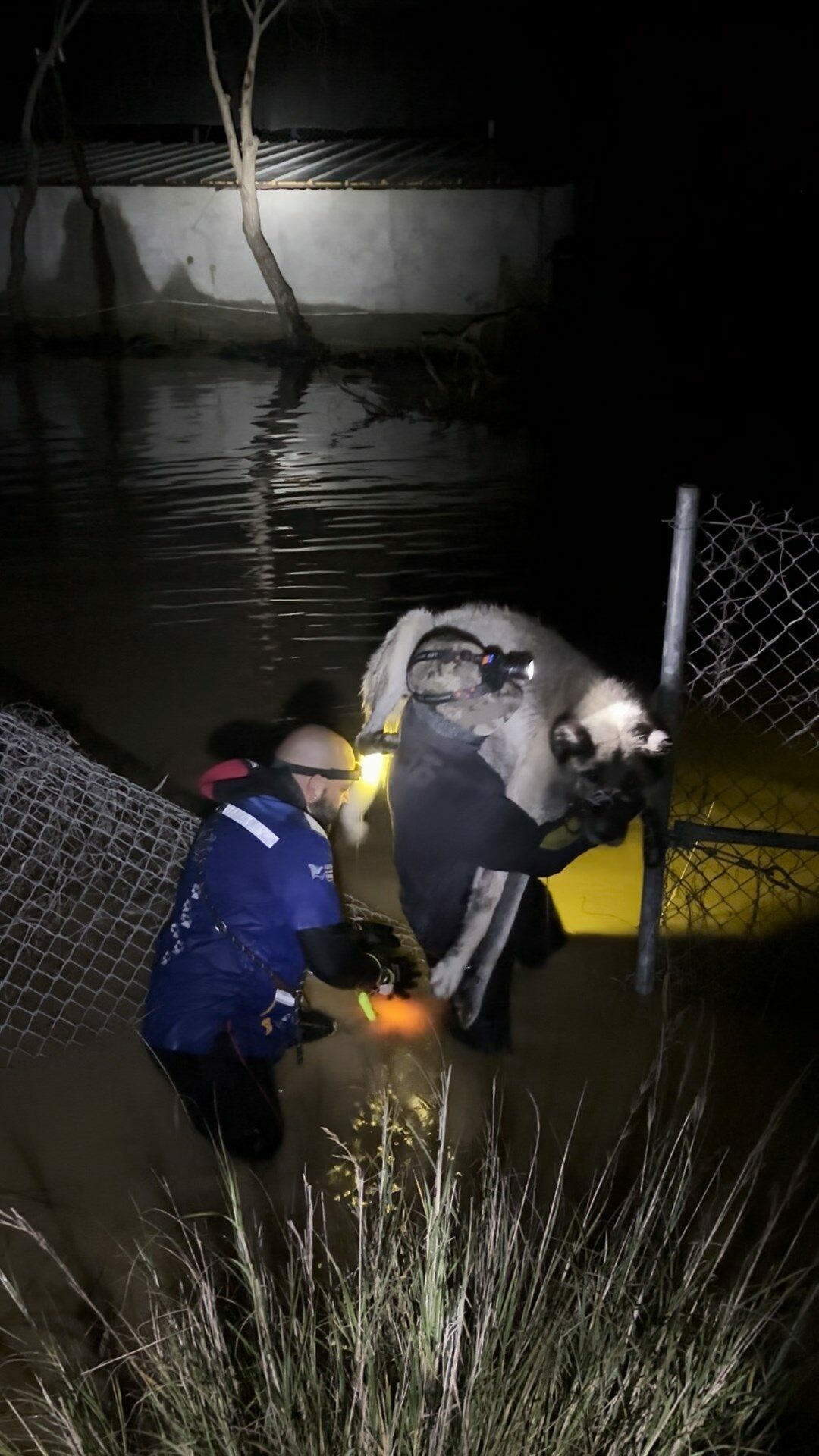 Manisa’nın Turgutlu ilçesinde perşembe günü sağanak sonrası yaşanan selde çiftlikteki 3 köpek, derinliği 2 metreye kadar ulaşan suyun ortasında mahsur kaldı. Kamyon şoförünün görüp, haber vermesi sonucu çiftliğe gelen Her Eve 1 Pati Derneği (HEPAD) ile Hayvan Hakları Federasyonu (HAYTAP) üyeleri, köpekleri sırtlarında taşıyarak kurtardı. Bursa’ya getirilen 3 köpek, özel bir klinikte tedaviye alındı. Hayvanlardan biri tedavisinin ardından çiftliğe teslim edilecek, diğer ikisi sahiplendirilecek.