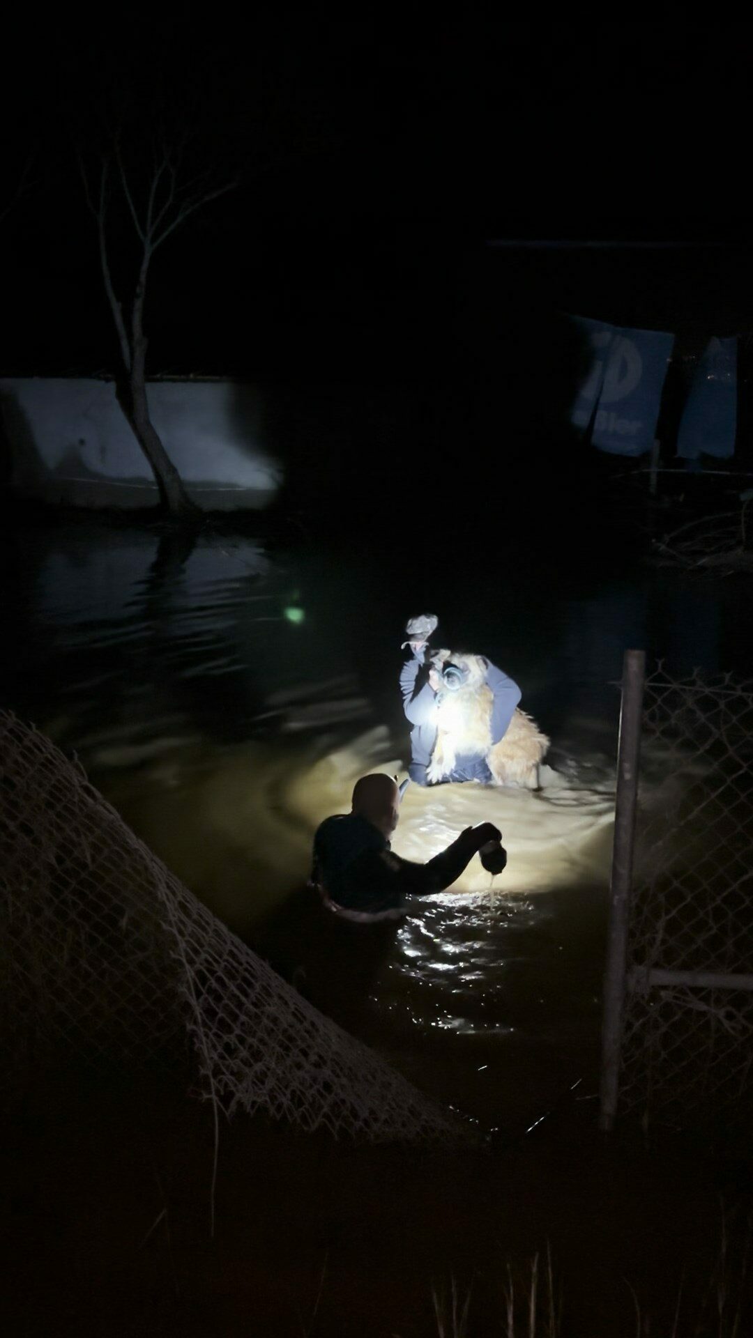 Emre Demir, “Tabii ki ilk başta hayvanlar ciddi anlamda korku içerisindeydi. Hatta bir tanesi koruma içgüdüsü olmasına rağmen ona yardım edeceğimizi belli ki hissetti ve buna yardım etti. Arkadaşımız onu sırtında taşıdı. Açıkçası bu yaşanan olay, bizi ne kadar üzse de onları en azından kurtarabildik. Sonrasında da oradaki aile ile iletişime geçtik. Onlar da bu durum karşısında son derece üzgündü. Aileyle iletişim halindeyiz. 3 dostumuzdan bir tanesi hala çok korkuyor. Çünkü orada yaşayan bir köpek değilmiş. Tabii su bastıkça o da oraya sığınmış bir haldeydi. Açıkçası o aralarında en korkak olanıydı. Hala çok fazla korkuyor. Tabii ki bu korkuyu zamanla ve sevgiyle aşacağız. Sağlık konusunda buradaki hekimlerimiz gerekli her şeyi yapıyor. Ama gerçekten son derece korku içindeydiler ve hissediyorlardı. Çünkü o ufak kahverengi olan ile orta boy olan, arkadaşımızı görür görmez onun yanına gitti ve kurtarmasına izin verdi. Kangal olan dostumuz ilk başta koruma içgüdüsü olduğu için biz ‘Bir şey yapar mı?’ diye düşünürken kendisi izin verdi. Arkadaşımızın sırtına almasına müsaade etti. Onlar da hissedebiliyor bizim gibi” diye konuştu.