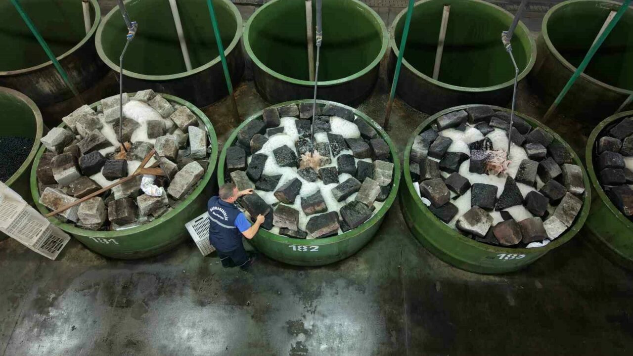 Toplanan zeytinler, 6 ay boyunca doğal fermantasyona bırakılıyor. Sürecin sonunda zeytinler, son teknolojiyle donatılmış steril havuzlarda yıkanıyor ve tuz eşliğinde üzerlerine taş basılarak dinlenmeye alınıyor. Bu yöntemle elde edilen ürünler, hem lezzet hem de kalite açısından öne çıkıyor.